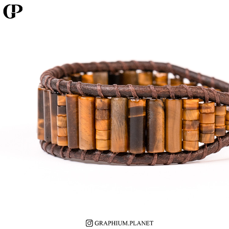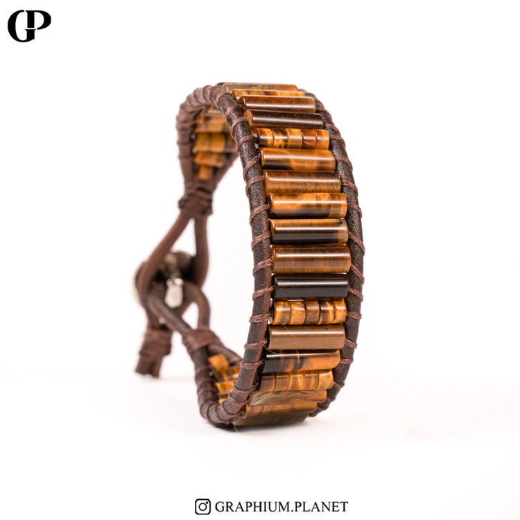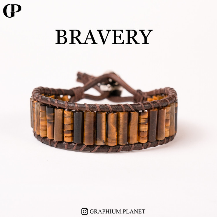 دستبند Bravery با سنگ چشم ببر و بندچرم