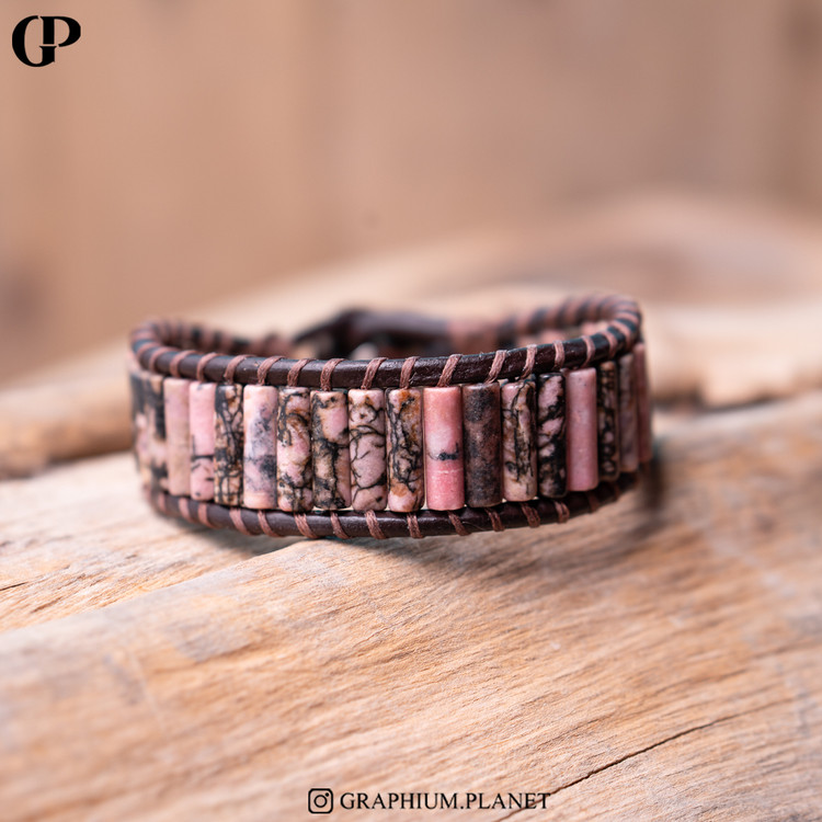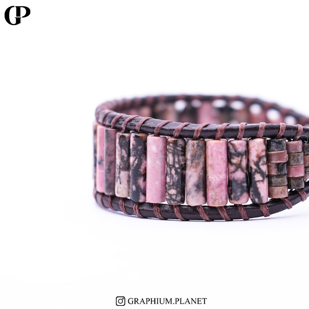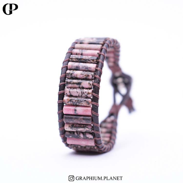 دستبند Amour با سنگ رودونیت و بندچرم