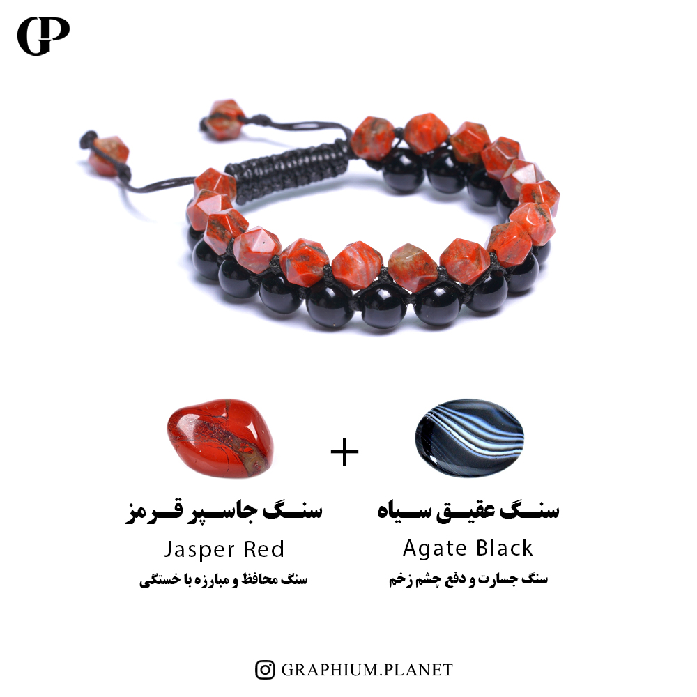 دستبند HORMOZGAN با سنگ عقیق سیاه و جاسپر قرمز