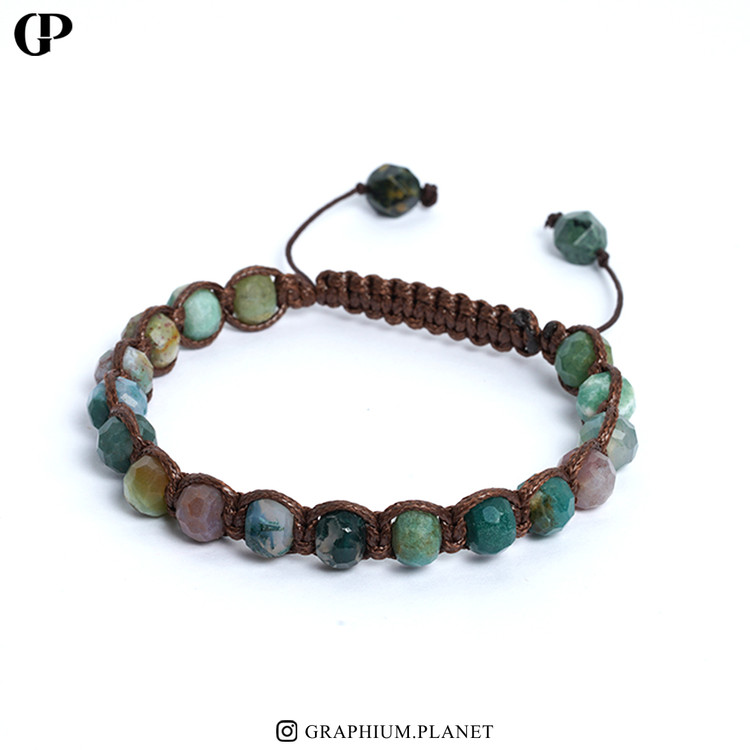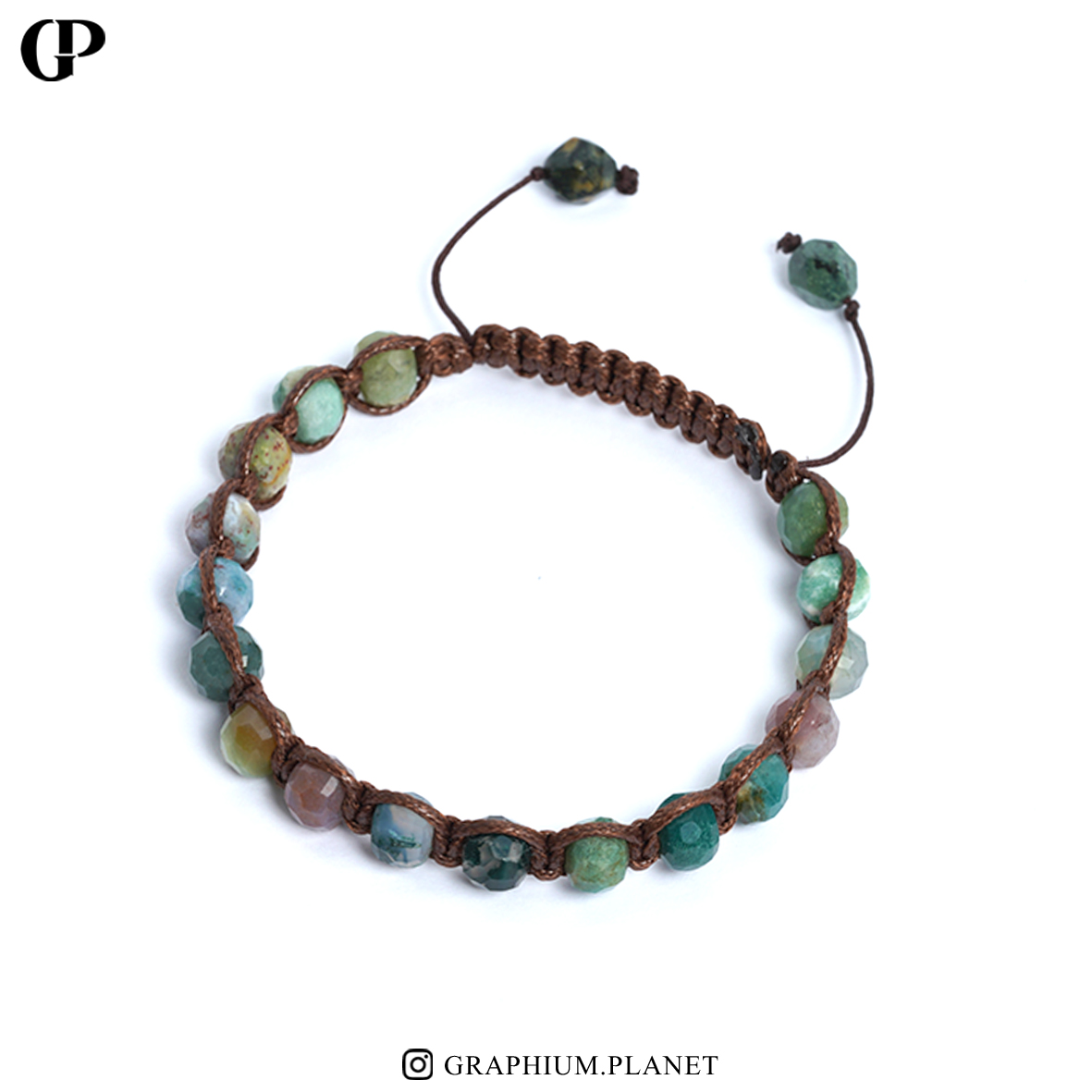 دستبند GISUME با سنگ عقیق خزه ایی و بند چرم